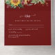 Hermosas rosas rojas de Burdeos pintadas con acuarela con girasoles amarillos vibrantes, hojas de olivo en verde salvia destacan en este artículo de boda moderno; parte de una colección más grande que incluye invitaciones, anuncios, tarjetas de respuesta, etiquetas de favor, tarjetas de agradecimiento, regalos para la fiesta de la novia y más. Ideal para su boda campestre, bosque, rústica, jardín o boho. ¡Valor económico pero de alta calidad!