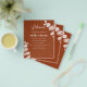 Tenga en cuenta que este programa está en papel de volante y es muy delgado. Los sobres no están incluidos. Para invitaciones más gruesas (el mismo diseño) visite nuestra tienda. Fondo naranja quemado oscuro, decorado con tallos de eucalipto, brotes. Personalice y agregue sus nombres y los detalles.