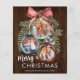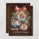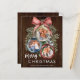 Añade tus propias fotos a esta elegante y única tarjeta de vacaciones BUDGET, en un material de cartón más barato y un poco más pequeño, para ayudarle a ahorrar dinero sin sacrificar la calidad del diseño. Las plantillas de fotos fáciles de usar están dentro de los adornos navideños colgados de pinares con un arco encima. Delante y detrás hay un fondo rústico de madera y el mensaje personalizado de los Navidades puede cambiarse o retirarse fácilmente. Para obtener más información sobre productos de coincidencia o preguntas de diseño, póngase en contacto conmigo a través de Zazzle Chat.