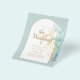 Invitación de boda moderna en verde azulado de hierba marina con aspecto de lámina dorada y hojas de color vidrio marino con un arco. Diseño de LeahG Fundadora de la Red de Bodas con Presupuesto Limitado Felicitaciones por su compromiso. PIN este diseño en su tablero de estado de ánimo de boda en Pinterest y disfrute de su viaje de planificación de boda. Este artículo es uno de muchos en una colección de bodas que incluye una variedad de diseños tipográficos. VER LA COLECCIÓN ADJUNTA PARA VERLOS TODOS. La mayoría de mis diseños incluyen campos de plantilla de texto en ambos lados (donde lo permite el producto) para garantizar que obtenga el mayor valor y beneficio práctico. En el caso de invitaciones y fechas de guardado, esto le permite incluir código de respuesta rápida, registro de regalos, sitio web de bodas, detalles de la recepción y, en los diseños más recientes, un código de escaneo QR. Para otros artículos, puede agregar texto o imágenes según sea necesario para su