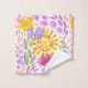 A beautiful towel set with a colorful, hand made pattern of watercolor blooming flowers.