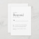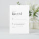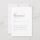 Tarjeta de respuesta RSVP de boda. Cena y baile. Fuente moderna. Tipo de letra combinado. Blanca. Botánico. Texto gris.
