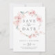 Esta flor de cerezo de primavera ahorra la tarjeta de fecha es perfecta para un boda moderno. El diseño floral oriental presenta una magnífica rama de flores de cerezo rosa y una flor de color rosa y hojas verdes con un elegante estilo japonés.