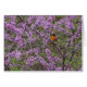 La fotografía animal de la naturaleza, de un pájaro de Oriole en un árbol floreciente de Redbud, y un saludo para la primavera comprenden esta tarjeta.