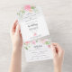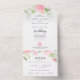 Este boda de peones de primavera, todo en una sola invitación, es perfecto para un boda elegante. El diseño moderno de primavera o verano incluye elegantes peonías acuáticas de color rosa pastel y hojas de color verde salado con un toque rústico de campo.