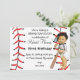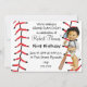 Primera invitación de la fiesta del cumpleaños del muchacho con el niño pequeño en uniforme y bate de béisbol del béisbol.