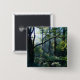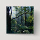 Brillantes rayos blancos del sol matutino fluyen desde detrás de ramas oscuras hacia un rico bosque de verano verde, con enormes árboles cubiertos de hiedra y un fértil maleza.