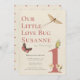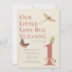 Esta encantadora y elegante invitación a cumplir 1 cumpleaños incluye bichos antiguos en un fondo de papel antiguo con mariposas, un delicado insecto volador y flores. En el lado inverso hay un patrón de puntos polka rosa dulce. Personalice el guión rosado para sus necesidades. Consulte la colección para coordinar productos.