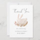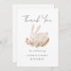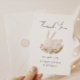Bonito ruborizante primer cumpleaños tarjeta de agradecimiento incluye un conejito de acuarela dulce en una cama boho floral y de hojas. En el frente está el hermoso guión de la caligrafía de agradecimiento, y en la parte posterior se incluye un mensaje de agradecimiento al personalizable con un conejito adorable. ¡Esta tarjeta puede ser personalizada para cualquier niño!