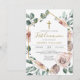 Invite a su huésped con nuestro rosa boho en primera comunión con vegetación eucalipto garland y acuarela color rosa floral. Personalice sus detalles con un diseño sencillo y un elegante estilo de letra manuscrito.
