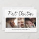 Nuestra primera tarjeta de Navidad. Hermoso diseño con texto moderno y elegante en negro Primera Navidad, 3 fotos en collage, Feliz Navidad de nombre de la familia en negro sobre blanco. La parte trasera presenta texto elegante y alegre de Joyful & Blessed, y un breve mensaje. Personalice con su texto y fotos. Todo el texto, fuentes y colores son personalizables. Le invitamos a visitar nuestra tienda, Austen & Grace para productos y más que coinciden. Por favor, no dude en hacernoslo saber si necesita alguna ayuda.
