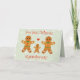 NewParkLane - Tarjeta de Navidad para nuevos abuelos, con la cita 'Su primera Navidad como abuelos', para celebrar su primera Navidad como abuelo y abuela, con dos hombres de jengibre adorables, y un pequeño bebé de jengibre y un corazón entre ellos, sobre un fondo nevado verde salvia. Los textos están en una divertida fuente manuscrita en rojo. Todos los estilos de texto, colores y tamaños se pueden modificar para adaptarse a sus necesidades.