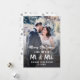 ¿Casados y radiantes? Un sencillo diseño de foto personalizada para recién casados para el nuevo Sr. y Sra. que celebran su primera Navidad juntos. Reemplace la imagen con una foto vertical de la pareja alegre y casada. Puede ser la foto de la boda o algo más. La elegante tipografía y la caligrafía del texto se pueden personalizar con su propio mensaje. Por ejemplo, Felices Fiestas se puede cambiar a Feliz Navidad, Saludos de la temporada o algo más. El diseño moderno y elegante es suyo para personalizarlo como desee.