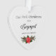 Este adorno navideño acrílico está diseñado en forma de corazón para parejas que aprecian su primera Navidad como prometidas. Personalice este keepsake con los nombres de la pareja y el año de celebración con una flor de bonito de poinsettia y pinecones rústicos abajo. Reemplace la foto del marcador de posición al revés con una foto propia. Toda la personalización se puede realizar utilizando los campos de plantilla proporcionados sin abrir el editor. Perfecto para colgar en tu árbol, este adorno personalizado es un encantador recordatorio de tu viaje juntos y una adición especial a tu decoración de vacaciones.