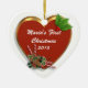La primera foto del bebé ornamento corazón de Navidad con un aspecto 3D dorado para un regalo especial de Navidades o recuerdo. Sube tu imagen en la parte de atrás para una verdadera memoria de tipo para el árbol cada año. (El efecto de desvanecimiento ya está ahí)