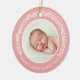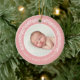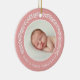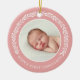 Crea un toque especial para la primera Navidad del bebé con este elegante adorno fotográfico en durazno claro y blanco! Plantillas de texto en la parte posterior para nombre y año.