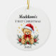 Celebra un precioso hito con este adorable adorno de Navidad del bebé. Con un lindo oso de peluche con un sombrero de Santa, personalizado con el nombre de su bebé, "Primera Navidad", y el año en el frente. La parte posterior está especialmente diseñada para añadir una foto muy apreciada, lo que la convierte en un auténtico personalizable único. Perfecto para los padres, abuelos o como un regalo para bebés. Este adorno personalizado es una maravillosa manera de conmemorar esa primera temporada navideña y será valorado en los años venideros.