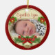 ¡Un hermoso adorno personalizado de Bebé de primera Navidad "tu foto" de arte navideño adorno! Este adorable adorno de cerámica de doble cara es una manera maravillosa de preservar los primeros recuerdos navideños de tu bebé y mostrarlos año tras año como decoración de flores de vacaciones. Este diseño presenta una hermosa guirnalda verde con adornos rojos y dorados y una flor de poinsettia en la parte inferior y un arco de arte digital con adornos rojo y dorado en la parte superior. Bonitos viajes dorados y marco alrededor de la zona de la imagen, y placa del año en la parte inferior. El borde del adorno es un patrón de copo de nieve rojo. Simplemente suba tu foto al frente para reemplazar la imagen de ejemplo en el centro. (Nota: Cuanto mayor sea la calidad de la foto subida, mejor se mostrará/imprimirá en la placa) Personalice el adorno en la parte superior con el nombre de su bebé y añada el año en la parte inferior para un toque final. Para editar el estilo de letra, tamaño o color, simplemente haga clic en "personalizar" bajo la imagen de la foto en esta página y esas opciones también estarán disponibles para usted! Este es un maravilloso placer para la familia para agregar a tu colección, o como un regalo significativo para un amigo, o un miembro de la familia lo atesorará! Si desea más información sobre los adornos vacacionales, la decoración de la casa y los pasteles, visite nuestra tienda.