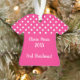 Pink Polka Dots on a un adorno adorable vestido de niñita para la Primera Navidad del Bebé. Haga clic en Personalizar para agregar el nombre y actualizar el año si es necesario.