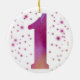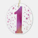 Primer cumpleaños - arte rosado y puntos de la acuarela del número uno - cumpleaños, ornamento del decoratiove