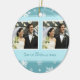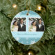 1r personalizable del ornamento de la foto del navidad de los pares con su propia foto, nombres y fecha en azul claro elegante con el modelo festivo de los copos de nieve. Una manera elegante de adornar su árbol de navidad u hogar para los días de fiesta. La de manera perfecta de recordar su primer navidad junto como par.