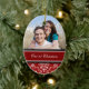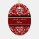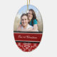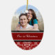 1r personalizable del ornamento de la foto del navidad de los pares con su propia foto, nombres y fecha en el rojo elegante, modelo floral clásico blanco y negro del damasco. Una manera elegante de adornar su árbol de navidad u hogar para los días de fiesta. La de manera perfecta de recordar su primer navidad junto como par.