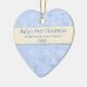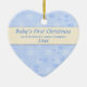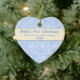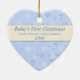 Conmemore el primer navidad de un bebé. Ornamento dulce del bebé en lunar azul con una bandera poner crema para el texto. Flotador azul de los corazones sobre el diseño. Personalice el nombre y el año del bebé. Un regalo pensativo perfecto para los nuevos padres que celebran su primer navidad con un bebé.