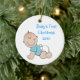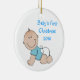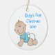 Ornamento redondo del árbol de navidad, con los gráficos del dibujo animado de un bebé. El texto azul en frente lee el primer navidad 2010 del bebé. Personalice el texto en la parte de atrás del ornamento con el nombre de su bebé y la fecha de nacimiento. El primer ornamento del navidad del gran bebé, y hace un regalo dulce también.