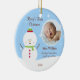 ¡El primer ornamento del navidad de este bebé personalizado se puede modificar para requisitos particulares con el nombre y la foto de su niño! Ofrece un muñeco de nieve adorable del día de fiesta y hace una gran embutidora de la media o regalo de la Nochebuena. ¡Es un recuerdo hermoso que usted atesorará para que venga Christmases!