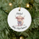 Este adorno de bebé personalizado con un adorable diseño de la vaca Highland! Este encantador ornamento exhibe una linda vaca de tierras altas con sombrero de Santa, rodeada de acentos festivos. La parte delantera del adorno muestra orgullosamente la frase "Primera Navidad del Bebé", recordándoles este hito especial. El adorno es personalizable con texto editable. Personalizar con el nombre de su hijo o cualquier otro detalle significativo que le gustaría apreciar. Con su encantador diseño y el sentimiento más sincero de "Que tu primera Navidad se llene de amor, risa e infinidad de charlatanes" en la parte trasera, este adorno capta la alegría y el calor de esta época mágica, lo que lo convierte en un complemento perfecto para tus decoraciones navideñas y un apreciado recuerdo de los años venideros.