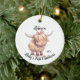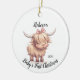 Este adorno de bebé personalizado con un adorable diseño de la vaca Highland! Este encantador ornamento exhibe una linda vaca de tierras altas con sombrero de Santa, rodeada de acentos festivos. La parte delantera del adorno muestra orgullosamente la frase "Primera Navidad del Bebé", recordándoles este hito especial. El adorno es personalizable con texto editable. Personalizar con el nombre de su hijo o cualquier otro detalle significativo que le gustaría apreciar. Con su encantador diseño y el sentimiento más sincero de "Que tu primera Navidad se llene de amor, risa e infinidad de charlatanes" en la parte trasera, este adorno capta la alegría y el calor de esta época mágica, lo que lo convierte en un complemento perfecto para tus decoraciones navideñas y un apreciado recuerdo de los años venideros.