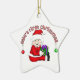 Puede cambiar fácilmente el año en este personalizable asiático Santa Bebé 1er Navidades adornado antes de pedir. Cuenta con un bebé vestido con traje de santa rojo y una gorra llena y un texto que dice "¡Primera Navidad del bebé!".