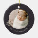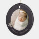 Celebra tu fiesta de debut con este Ornamento de Navidad Personalizado del Bebé. Diseñado para su toque único, este ornamento cuenta con un encantador espacio enmarcado por copos de nieve para una foto atesorada de su hijo. "Mi primera Navidad" se muestra elegantemente en una fuente sans-serif debajo de la foto, exuberante calidez y alegría. El lado inverso continúa el encantamiento con un motivo de copo de nieve en la parte superior, mientras que usted puede agregar el nombre y apellido de su bebé junto con la fecha del preciado evento. Cree un conservador atemporal que capte la esencia de la primera festividad de su bebé, y marque esta ocasión especial con un ornamento verdaderamente personalizado que será apreciado en los próximos años.