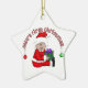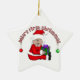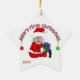 Puede cambiar fácilmente el año en este personalizable Latino Santa Bebé Primer Navidades adornado antes de pedir. Cuenta con un bebé vestido con traje de santa rojo y una gorra llena y un texto que dice "¡Primera Navidad del bebé!".
