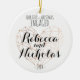 ¡Nuestro primer navidad dedicado o junto o casó el ornamento que ofrecía un corazón geométrico del oro color de rosa hermoso! Personalizado con sus nombres en fuente tipográfica de la escritura.