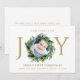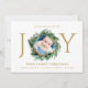 Una elegante tarjeta de Navidad con un ramo floral de alegría con tipografía dorada moderna para que puedas personalizarla añadiendo el nombre de tu familia y especial. Diseñada por Thisisnotme©