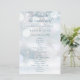 Presenta una elegante tipografía azul polvorienta y delicados copos de nieve que caen sobre sus detalles bodas personalizados sobre un fondo de hielo invernal. Diseñado por Thisisnotme©