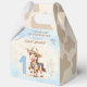 Primer rodeo con temática 1er cumpleaños caja grande de favores gable con un lindo y feliz caballo de vaquero en azul pastel y piel de vaca beige y beige con textura de papel antiguo. Puede elegir entre 3 tamaños de estas cajas de preferencia gable. Personalice fácilmente todo el texto, incluido el número de cumpleaños. - Kate Eden Art