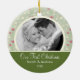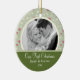 ¡Nuestro primer navidad de la foto adorna características un fondo floral rosado verde hermoso con una banda negra! ¡Personalice con su información y fecha y usted están todos fijan para ir! El regalo anticuado maravilloso del recuerdo para su primer navidad y una gran adición a usted navidad adornan la colección.