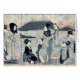 La impresión muestra cinco mujeres, cuatro hombres, y a un niño en un transbordador; un hombre poling el barco y un hombre es portero asentado en la parte posterior del barco con las cestas de berenjenas, de las mujeres, de niño, y de un hombre que sostiene un halcón en su antebrazo izquierdo, y el cuarto hombre puede ser un fiesta de la caza que es balseado a través del río. Vista del monte Fuji en el fondo. Es comúnmente aceptado que él comenzó su carrera como alumno del pintor Toriyama Sekien. Sus trabajos temprano sabidos son programas de los retratos y del teatro del actor. Desde 1791 Utamaro concentró su trabajo en los solos retratos de mujeres. Él tomó sus modelos de la calle o del distrito Yoshiwara del placer. Las historias de sus romances con las señoras de los "cuartos autorizados" reputan abundantes.