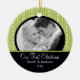 ¡Nuestro primer navidad de la foto adorna características un fondo negro y verde hermoso de la raya con una banda negra! ¡Personalice con su información y fecha y usted están todos fijan para ir! El regalo anticuado maravilloso del recuerdo para su primer navidad y una gran adición a usted navidad adornan la colección.