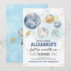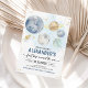 Despega hacia una celebración estelar con esta invitación de cumpleaños de "Primer viaje alrededor del Sol" con temática de espacio exterior. Con un caprichoso diseño de galaxia con planetas, estrellas y una nave espacial adorable, es la manera perfecta de honrar el importante primer cumpleaños de tu pequeño astronauta. Esta moderna papelería cósmica es totalmente personalizable, lo que garantiza que tu fiesta temática celestial comience con una impresión verdaderamente fuera de este mundo para amigos y familiares.