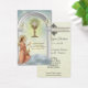 Esta es una hermosa tarjeta de recuerdo de Primera Comunión diseñada con un ángel celestial que incensa y adora la Santísima Eucaristía. Todo el texto y las fuentes se pueden modificar. Shower of Roses Shoppe también ofrece invitaciones coordinadas.