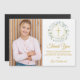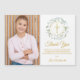 Una guirnalda decorativa de laurel, anillos de oro y un crucifijo se sitúan encima de su especial mensaje de agradecimiento de primera comunión y junto a su propia foto en este elegante diseño. El reverso presenta una guirnalda de laurel coincidente, anillos de oro y un crucifijo. Diseñado por Thisisnotme©