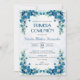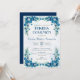 Invite a su familia a una Primera Comunión Católica con esta encantadora invitación con flores azules. Perfecto para una celebración religiosa de la Primera Comunión. Español / Español: Celebra la Primera Comunion de tu hijo o hija con esta invitación.