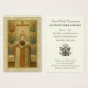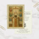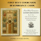 Recuerdo elegante de la Primera Comunión católica que presenta una imagen devocional vintage de la Elevación de la Hostia durante el Santo Sacrificio de la Misa. El sacerdote, vestido con vestiduras romanas tradicionales, eleva la Sagrada Hostia que lleva el monograma IHS, rodeado de ángeles adoradores y luz radiante de la Cruz. Este diseño clásico y reverente se combina con detalles personalizados del día especial del comulgante, la parroquia y el celebrante. Un recuerdo perfecto para este hito sacramental sagrado.