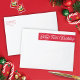 Esta elegante y festiva etiqueta de domicilio vacacional presenta un fondo rojo con escritura blanca y tipografía moderna. El saludo del guión dice "Primera Navidad del bebé". Personalizar con tu propio nombre y dirección. Este diseño se coordina con nuestra tarjeta fotográfica "Baby's First Christmas".