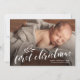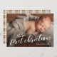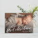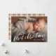 Una simple tarjeta de festividad fotográfica con primera navidad escrita a mano y rama y tipo mínimo. Haga clic en el botón de edición para personalizar de este diseño.