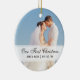 Primer ornamento del navidad del par elegante, simple con la foto. Para los recienes casados y los padres de pares nuevamente casados como recuerdo de su día de boda.