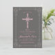 Esta elegante y clásica primera invitación a la comunión sagrada presenta una pintada cruz de rosa y blanco con un borde detallado a juego. Perfecto para la ocasión religiosa especial de su chica, el texto y el color de fondo se pueden personalizar a su gusto.